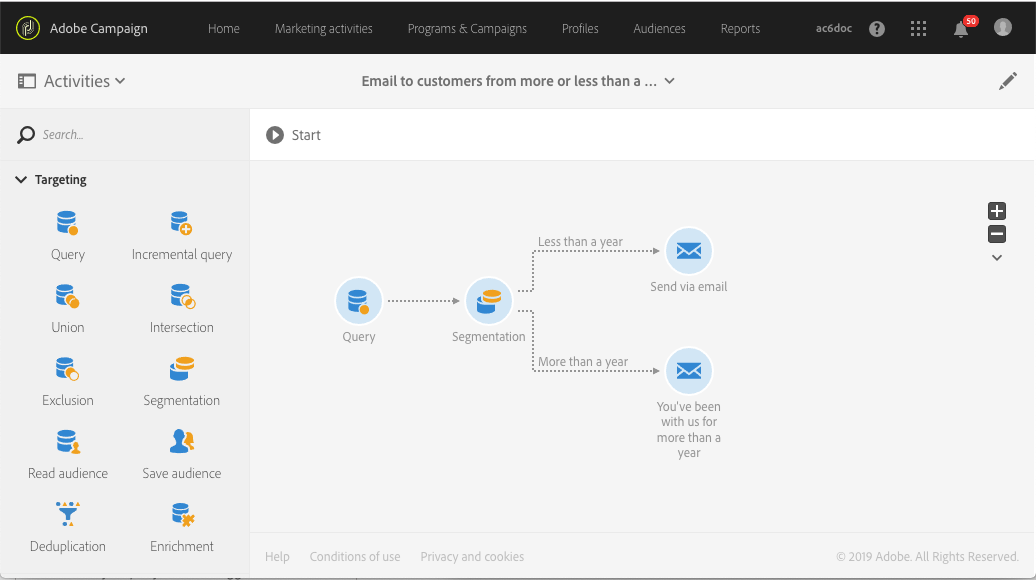- Activities > Targeting에서 세분화 활동을 끌어다 놓고 두 번 클릭합니다.
