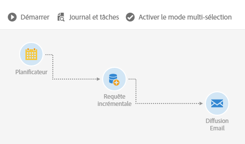 Une Requête incrémentale, permettant de cibler tous les abonnés actuels lors de la première exécution, puis uniquement les nouveaux abonnés de la semaine lors des exécutions suivantes.