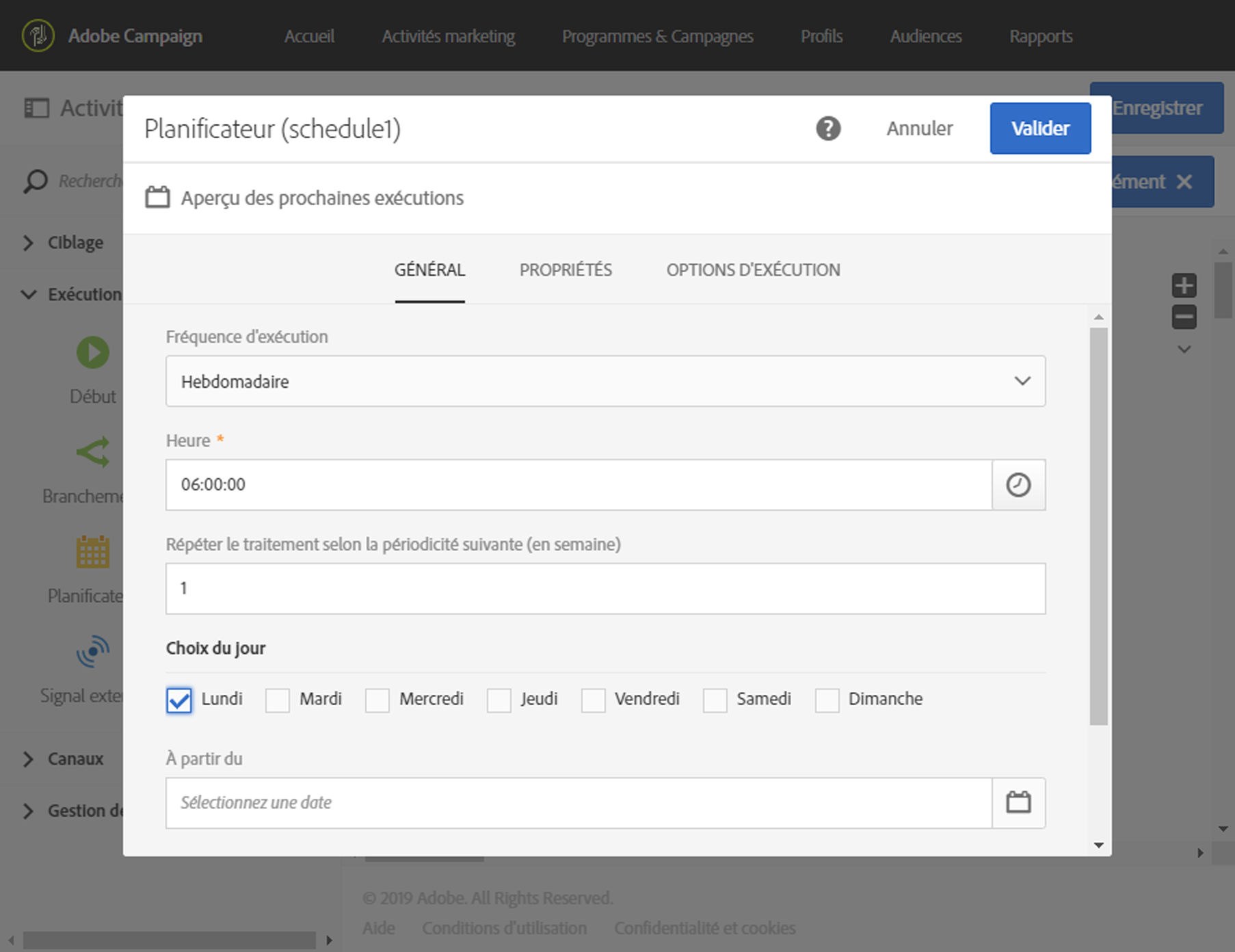 Un Planificateur, afin que le workflow s’exécute chaque lundi à 6h.