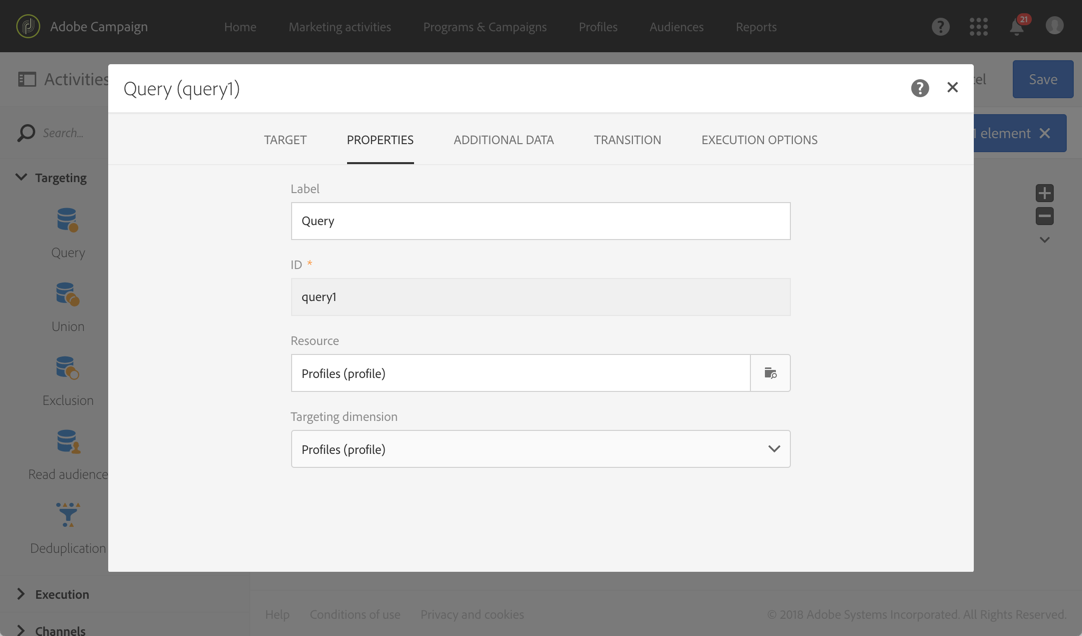 - 이 경우 프로필을 타겟팅하려고 합니다. 타겟팅 차원을 Profiles (profile)(으)로 설정합니다 .