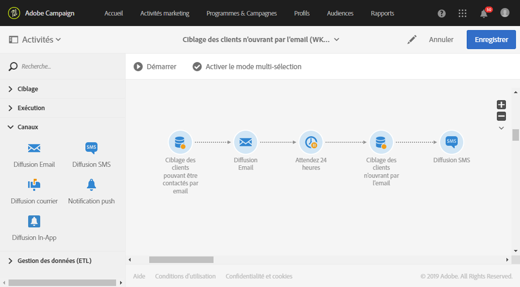Vous pouvez envoyer un email à des clients et ensuite un SMS à ceux qui n'ont pas ouvert l'email.