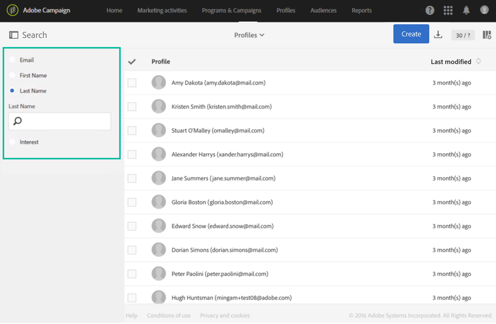 마케팅 기록은 Adobe Campaign Standard API를 사용하여 액세스할 수도 있습니다. 자세한 내용은 전용 설명서를 참조하십시오.