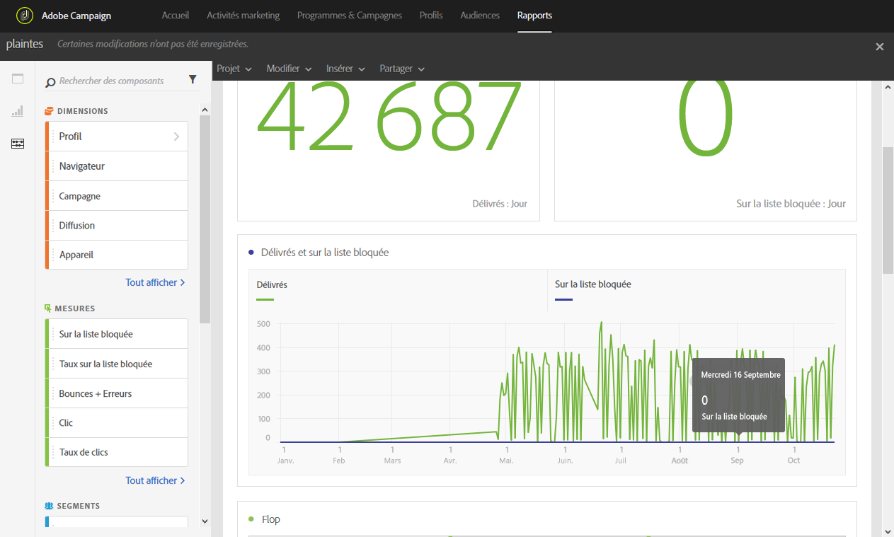 Le rapport Plaintes permet d'identifier les diffusions ayant reçu le plus de déclarations comme spam.