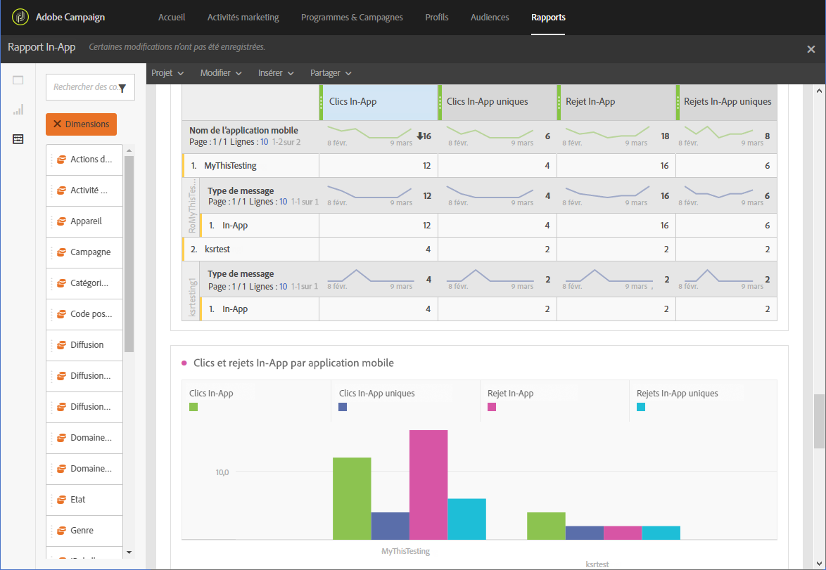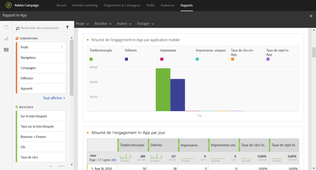Le rapport In-App fournit des détails liés aux diffusions In-App.