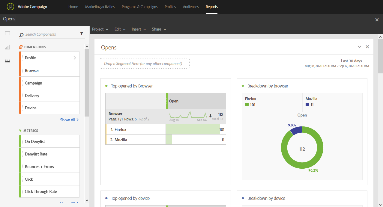 다음 Opens 보고서는 수신자가 가장 많이 본 게재 항목을 식별합니다.