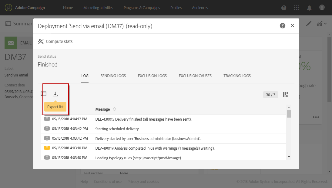게재를 모니터링하고 영향을 측정하는 방법에는 여러 가지가 있습니다. 기능 관리자는 메시지 로그 및 게재 로그에 액세스할 수 있습니다.