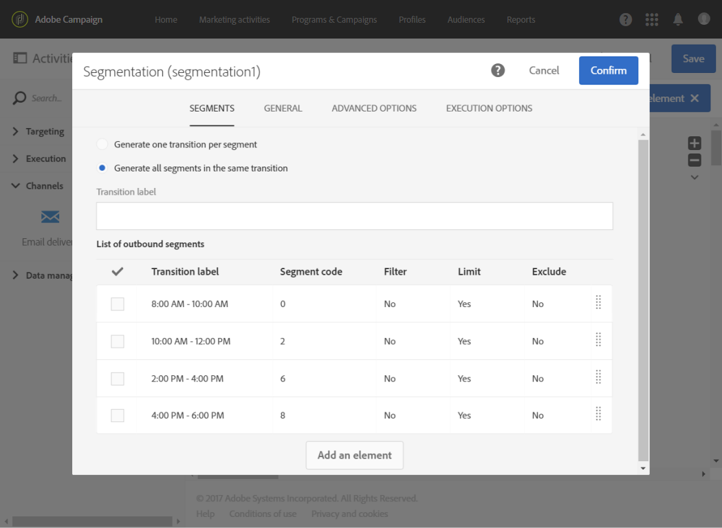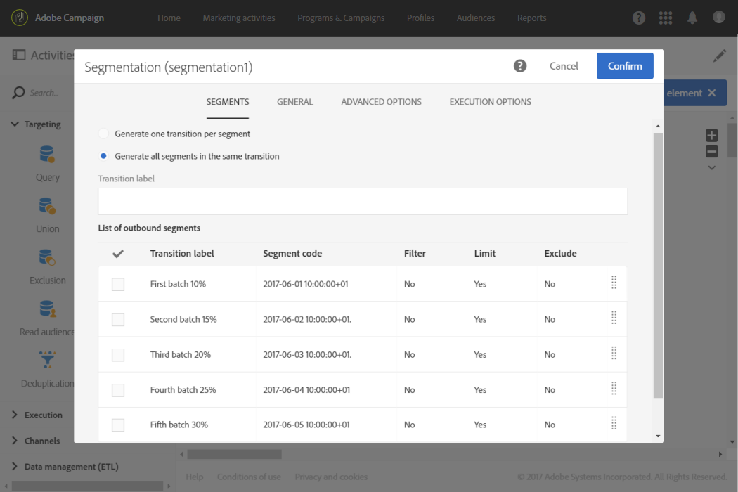 모든 세그먼트가 정의되면 Generate all segments in the same transition 을(를) 클릭합니다. Confirm.