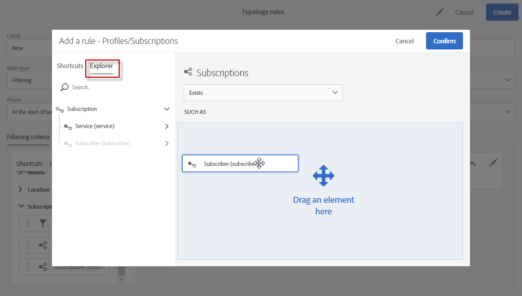 에서 Explorer 쿼리 편집기의 탭에서 을(를) 끌어서 놓습니다 Subscriber 노드가 화면 주 부분에 있습니다.