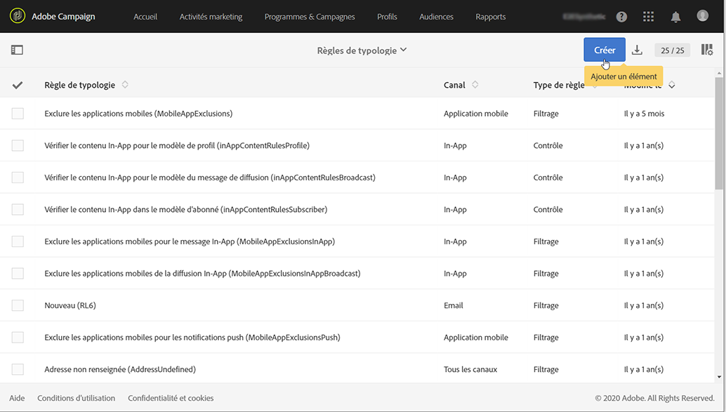 Les règles de typologie sont disponibles depuis le menu Administration > Canaux > Typologies > Règles de typologie.