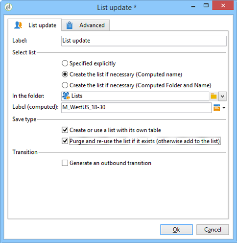 Si vous souhaitez que la liste créée ou mise à jour utilise une autre table que la table des destinataires, cochez l'option Créer ou utiliser une liste ayant sa propre table.