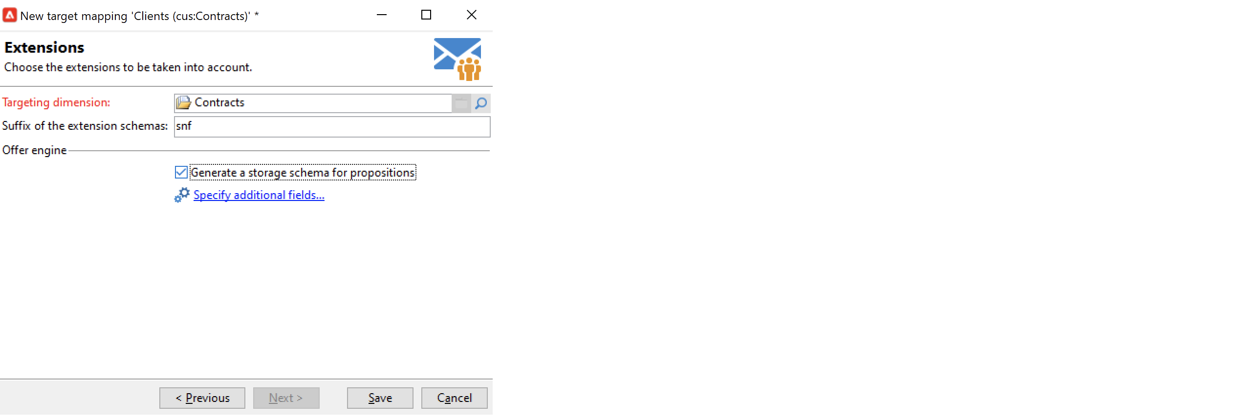 la procedura guidata per la creazione di Adobe Campaign target mapping consente di creare tutti gli schemi necessari per utilizzare la mappatura di destinazione personalizzata.