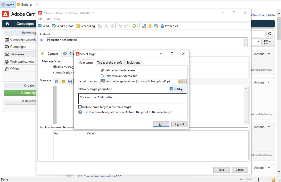 Para definir el objetivo de la notificación, haga clic en el enlace To y, luego, en Add.