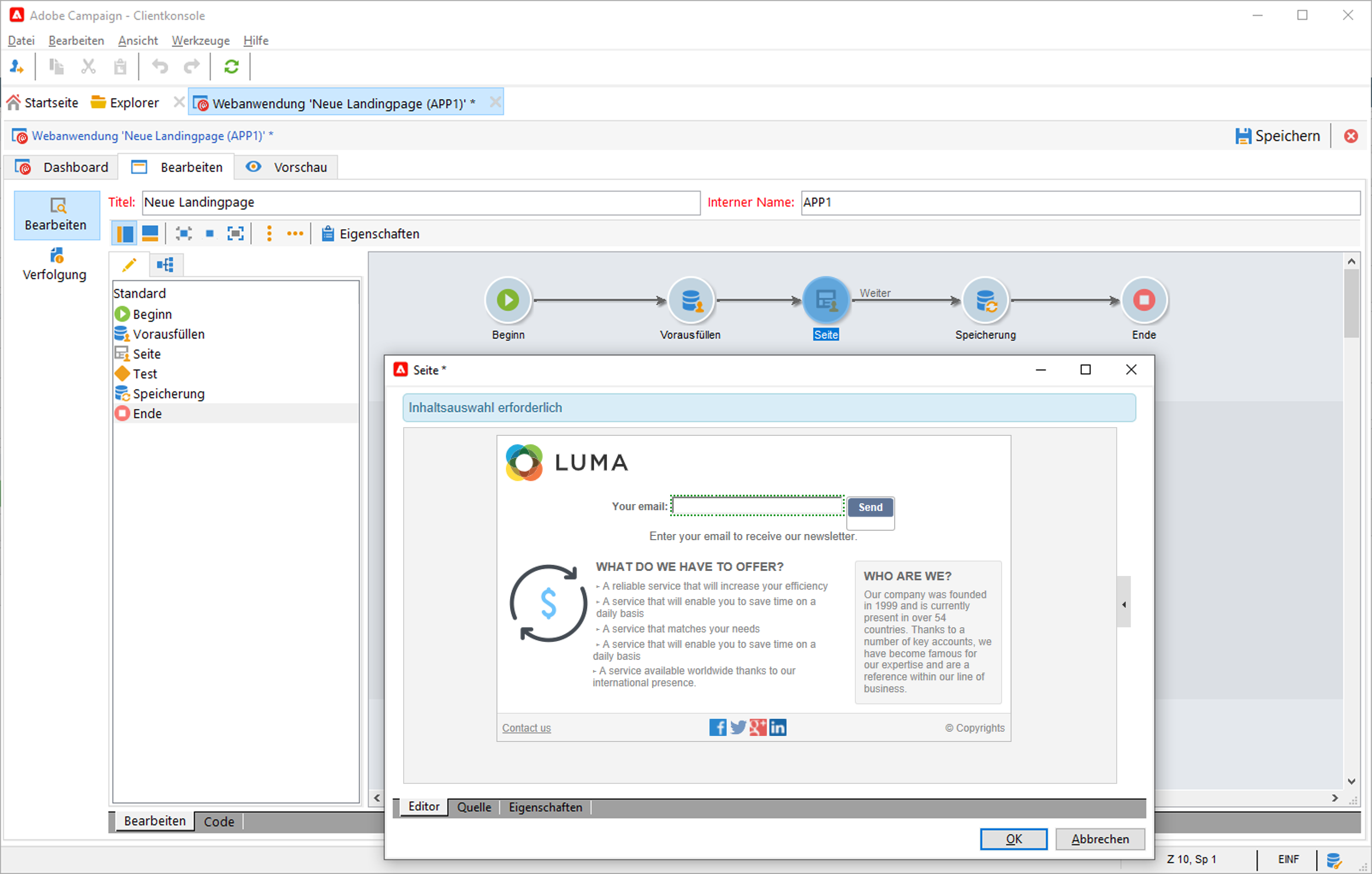 Verwenden Sie Campaign, um Web-Formulare zu erstellen und Profilinformationen einfach und effizient zu erfassen und zu verwalten. Sie können diese Formulare auf Ihrer Website freigeben, sodass Ihre Kontakte ihre Informationen einfach bereitstellen können. Ihre Informationen werden an Campaign gesendet, um ein Profil zu erstellen oder dessen Daten zu aktualisieren, sofern diese bereits in der Datenbank vorhanden sind.