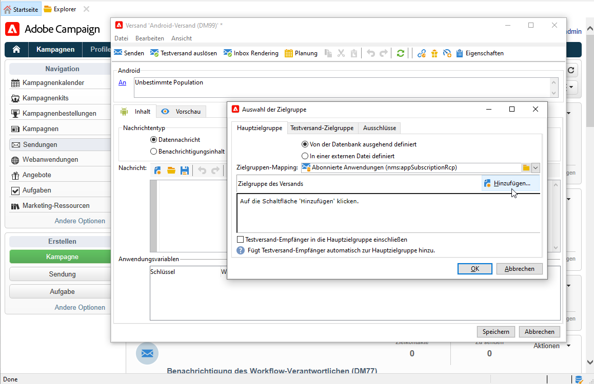 Klicken Sie zur Bestimmung der Zielgruppe der Benachrichtigung auf den Link An und anschließend auf Hinzufügen.
