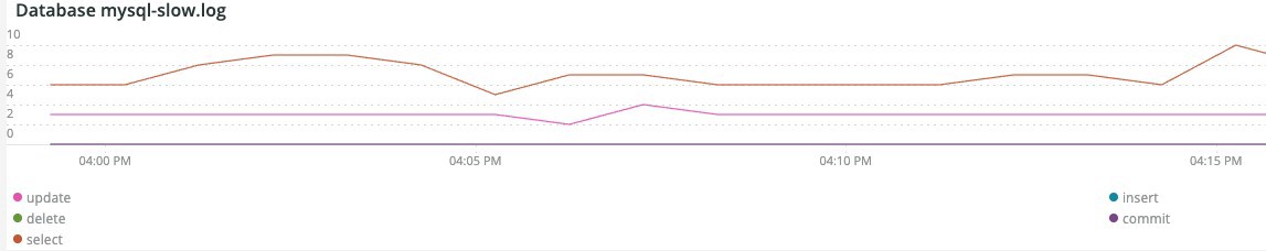 The Database mysql-slow.log frame shows the query statement types that were in the mysql-slow.log file across the selected timeframe.