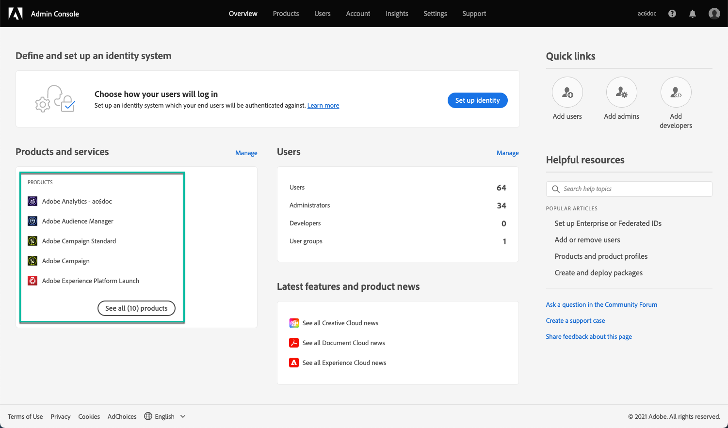 Naviguez vers la page d’accueil d’Adobe Experience Cloud.