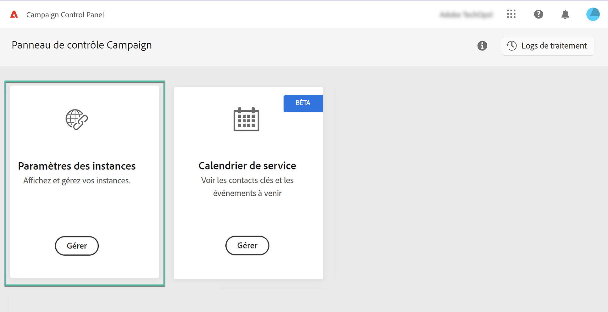 Si vous rencontrez des problèmes pour accéder au contrôle d’accès, il est fort probable que votre instance marketing ne soit pas encore mappée à votre identifiant d’organisation. Contactez l’assistance clientèle afin de compléter cette configuration pour continuer. Une fois la connexion établie, la page d’accueil du panneau de contrôle s’affiche.