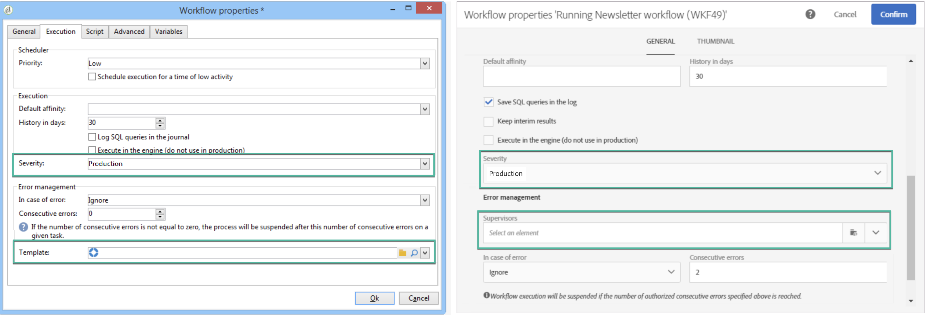 This field allows you to assign an operator to a workflow. If the workflow fails, the associated operator will be alerted. Learn more in Campaign Standard and Campaign Classic documentation.