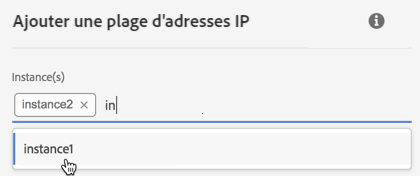 Il est possible d’ajouter une plage à la liste autorisée pour plusieurs instances. Pour ce faire, appuyez sur la touche Flèche vers le bas ou saisissez les premières lettres de l’instance souhaitée, puis sélectionnez-la dans la liste de suggestions.