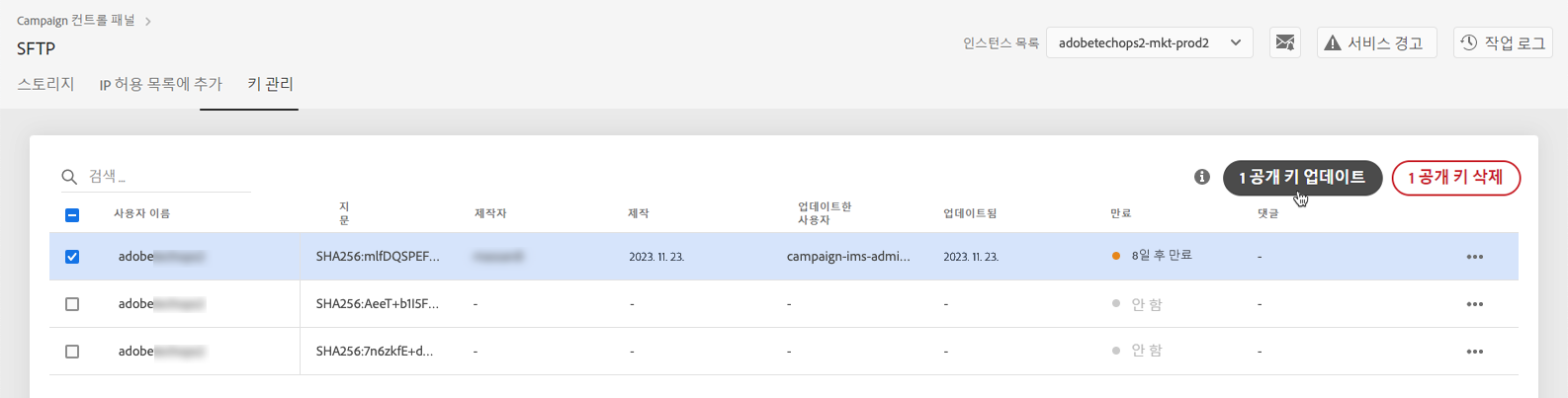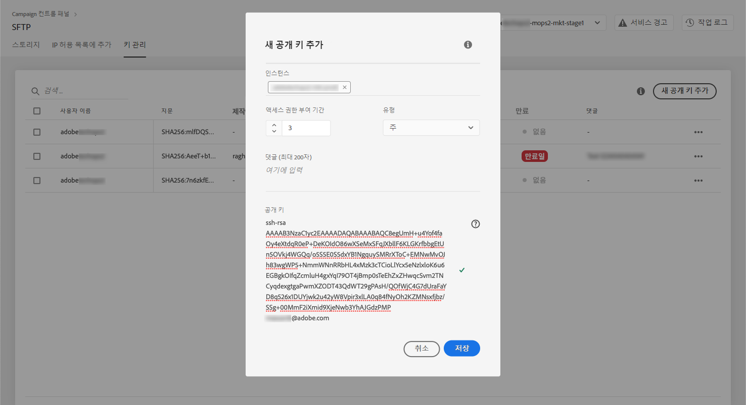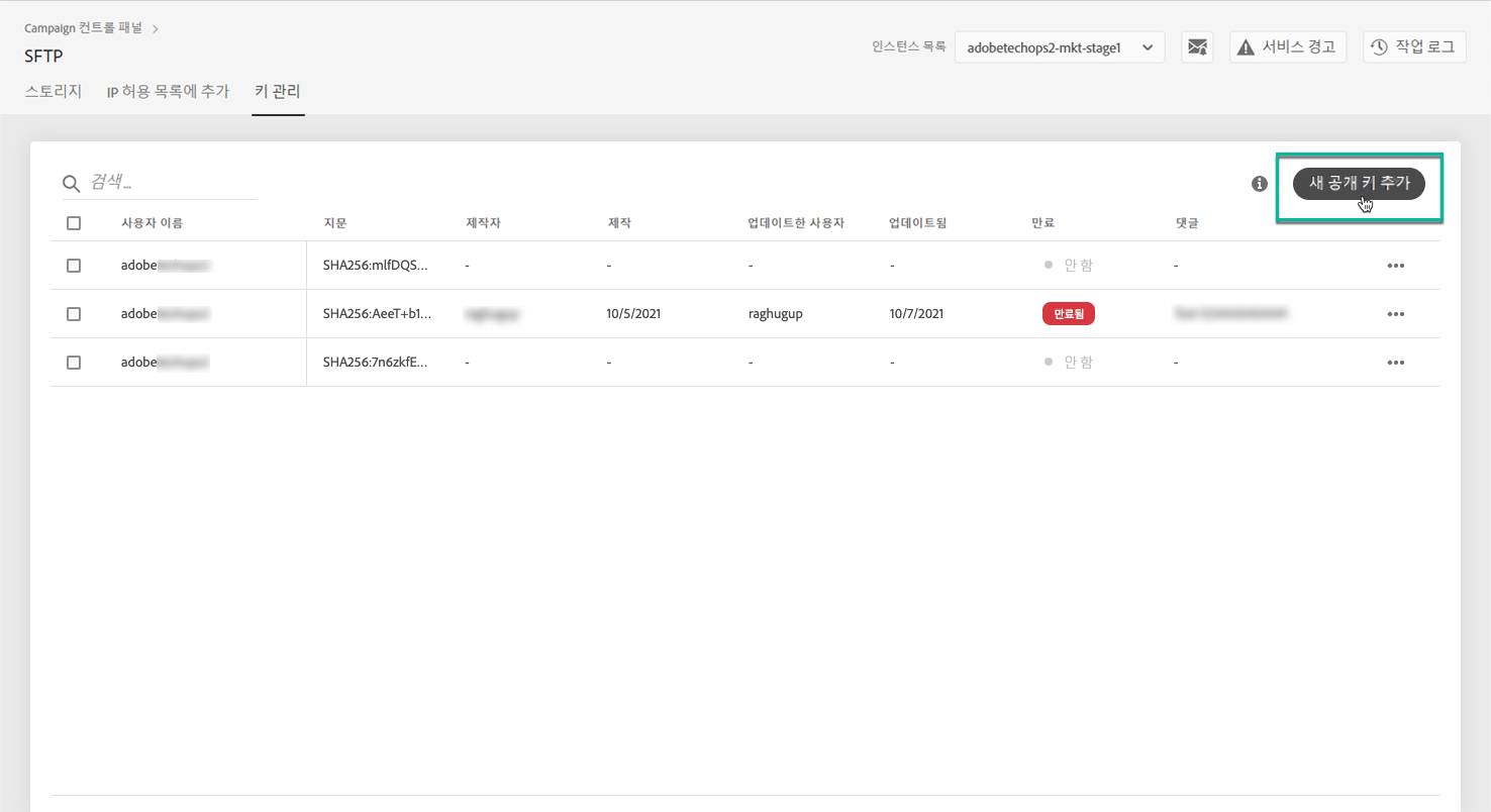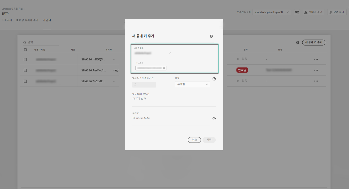 만료된 공개 키를 더 이상 사용하여 SFTP 서버에 연결할 수 없습니다.