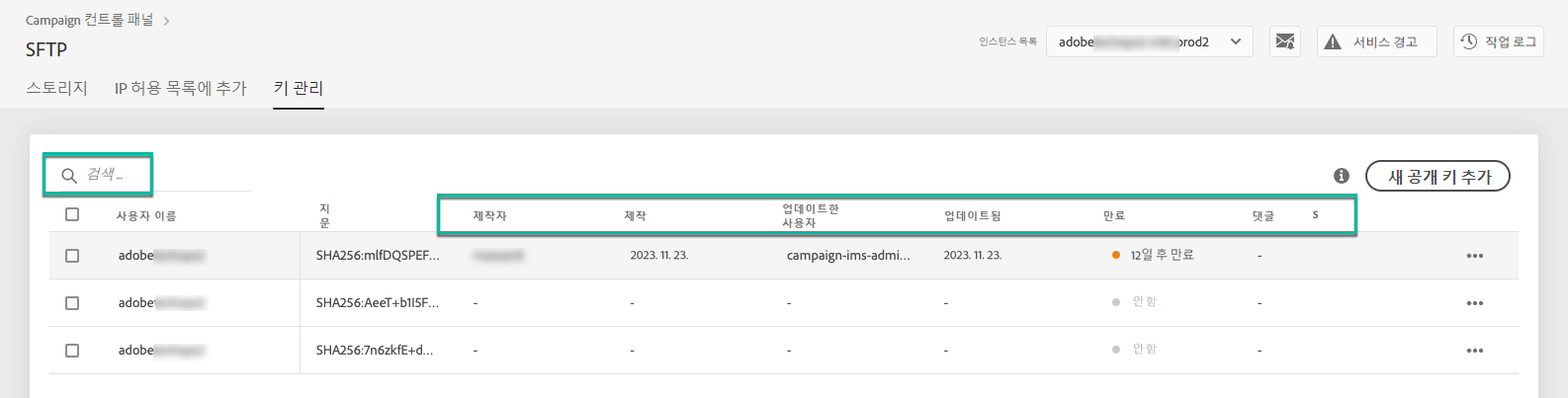 2021년 10월 Campaign 컨트롤 패널 릴리스 이후 생성된 공개 키만 편집할 수 있습니다.