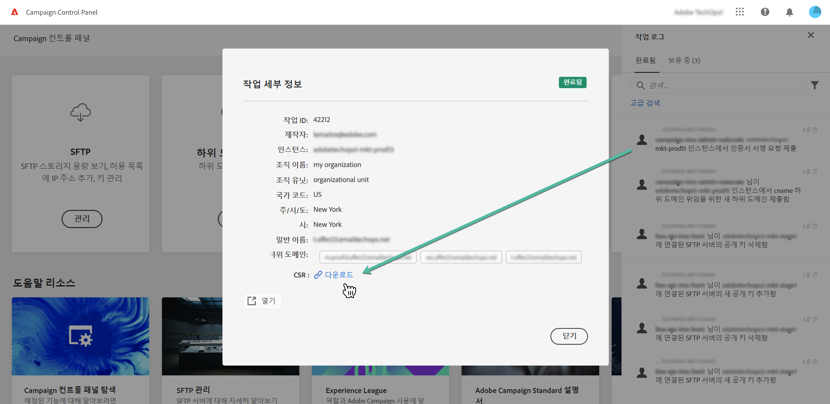 SSL 인증서를 구매하려면 먼저 인증서 서명 요청을 다운로드해야 합니다. CSR은 생성된 후 자동으로 다운로드됩니다. 작업 로그에서 언제든지 다시 다운로드할 수도 있습니다.