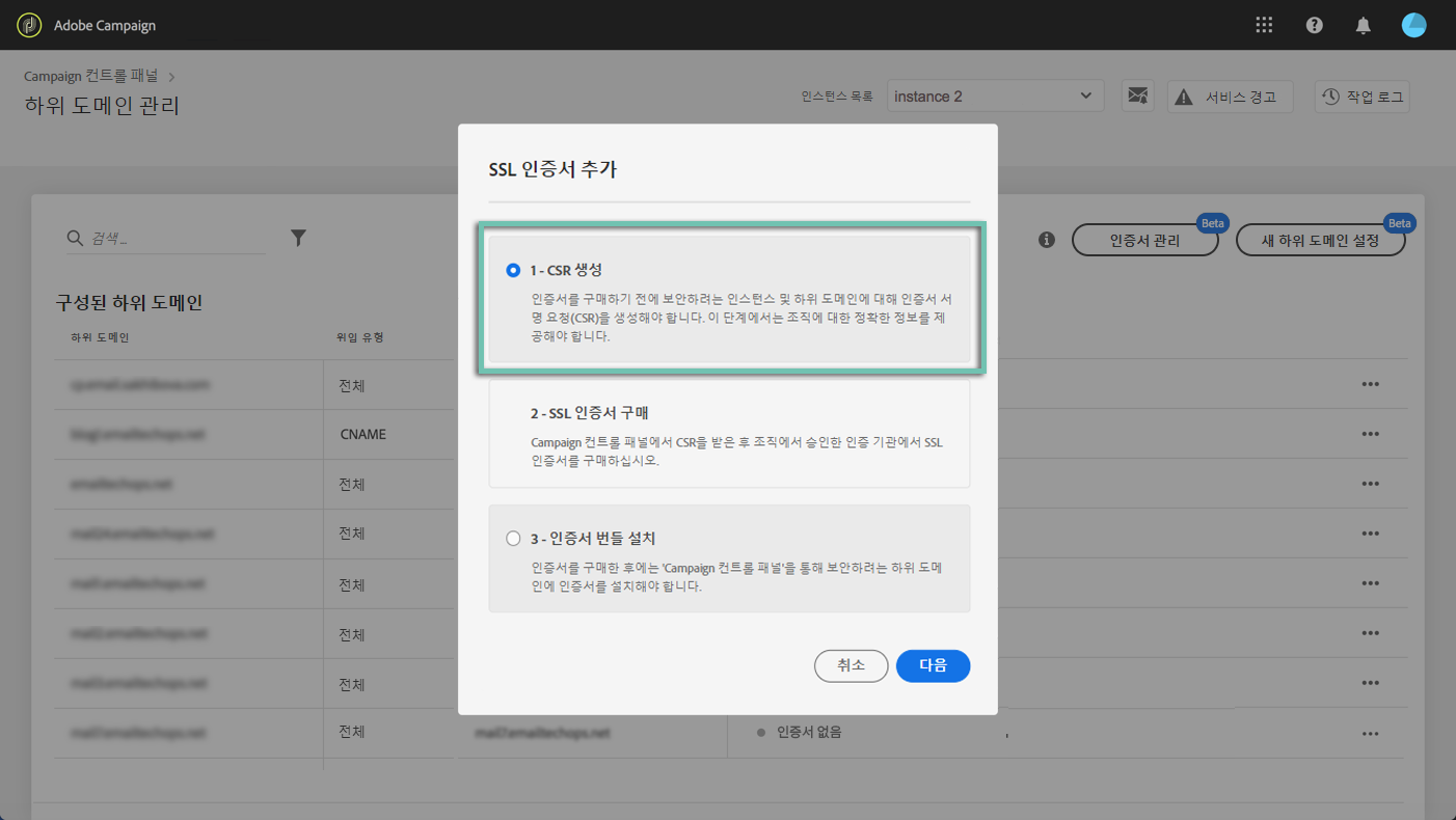 구매한 SSL 인증서는 하위 도메인을 보호하기 위해 인스턴스에 설치할 수 있습니다. 자세히 알아보기