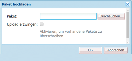 Wenn bereits ein Paket mit diesem Namen existiert, können Sie auf dieses klicken, um den Upload zu erzwingen (und das vorhandene Paket zu überschreiben).