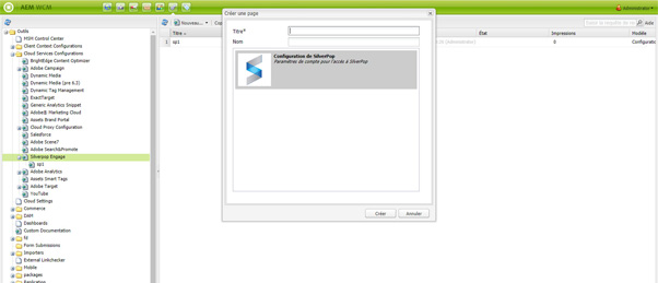 Pour créer une configuration Silverpop dans Outils :