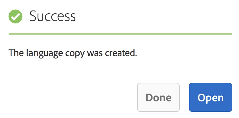 The Language Copy wizard is a guided experience for creating and instrumenting multilingual content structure. It is now much simpler and quicker to create a language copy.