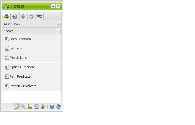 Experience Manager Assets O inclui vários predicados que podem ser adicionados à página Compartilhamento de ativos. Isso permite que seus usuários restrinjam ainda mais as pesquisas. Em alguns casos, eles podem substituir um parâmetro do construtor de consultas (por exemplo, o parâmetro Caminho ).