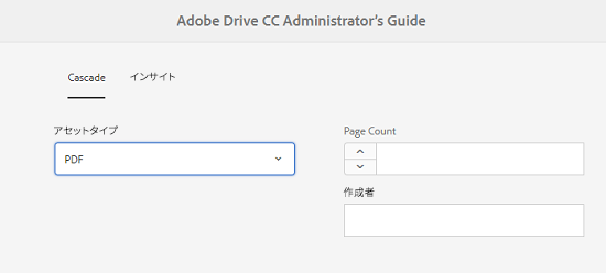 メタデータスキーマを適用したフォルダーに移動して、アセットのプロパティページを開きます。「アセットの種類」フィールドでの選択に応じて、関連するカスケードメタデータのフィールドが表示されます。