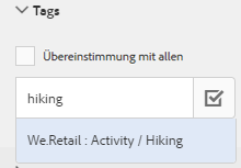 Geben Sie Tags an, anhand derer Sie nach Assets suchen möchten, oder wählen Sie aus der Liste mit Vorschlägen aus.