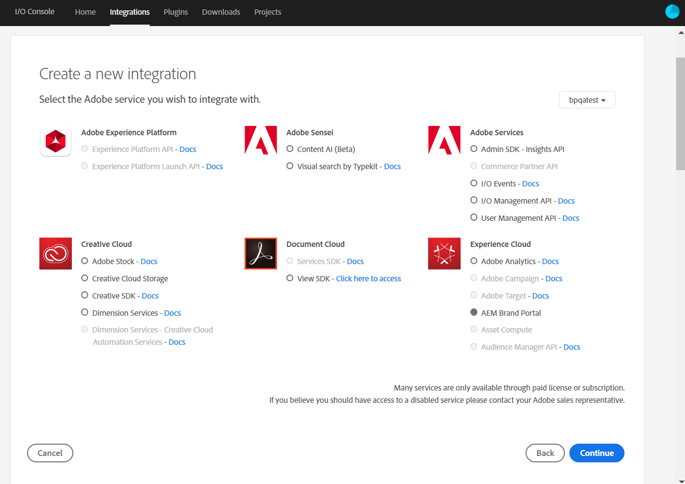 클라우드 솔루션 에서 Adobe Brand Portal 을 선택합니다.