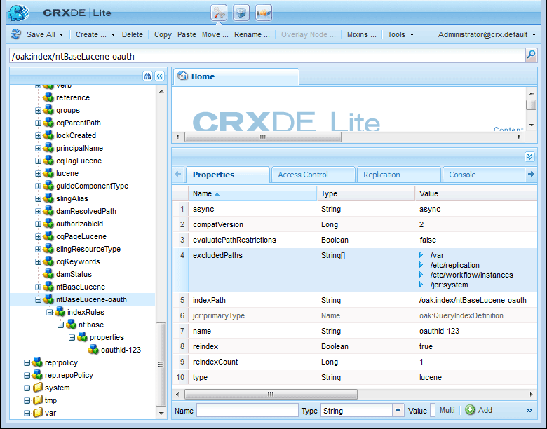 - indexPath: /oak:index/ntBaseLucene-oauth