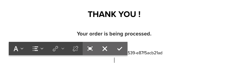 Na página Obrigado, selecione o componente de texto e, no menu de edição do componente, clique no ícone Cancelar herança .