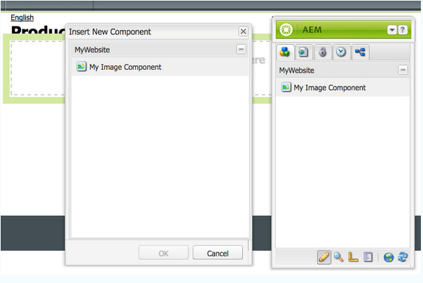 En el cuadro de diálogo, una lista de Componentes permitidos se muestra; vaya a MyWebsite, seleccione Componente Mi imagen y haga clic en OK.