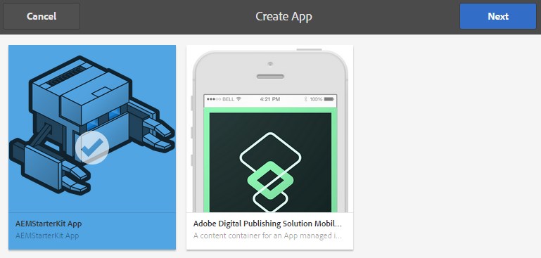 최신 AEM Apps 6.1 샘플 패키지에는 앱 템플릿이 있는 업데이트된 버전의 Geometrixx 앱이 포함되어 있습니다. 또는 템플릿을 제공하는 StarterKit을 설치할 수 있습니다.