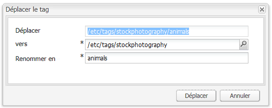 La boîte de dialogue Déplacer le tag se présente comme suit :