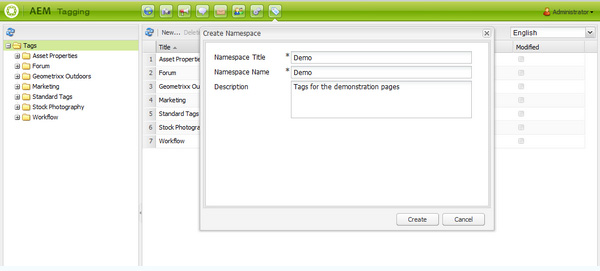 네임스페이스(예: 데모)를 선택하는 경우 해당 네임스페이스 안에 태그를 만들 수 있습니다.