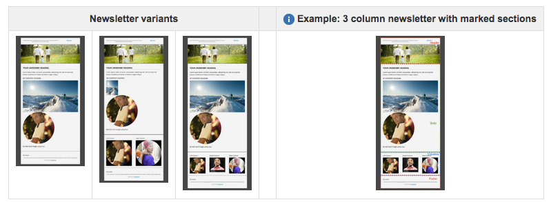 솔리드 베이스를 제공하고 다양한 컨텐츠 플로우 가능성을 확장하기 위해 기본적으로 사용할 수 있는 템플릿 유형은 세 가지가 약간 다릅니다. 이러한 속성을 사용하여 사용자 지정 뉴스레터를 작성할 수 있습니다.