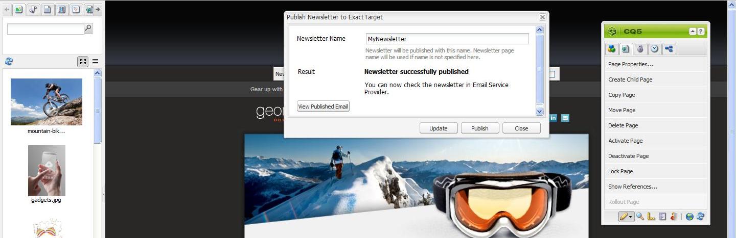Silverpop Engage가 구성되면 Silverpop Engage에 뉴스레터 또는 이메일을 게시할 수 있습니다.