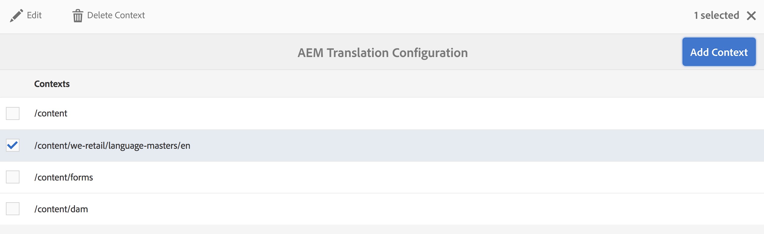 之后,您需要选择上下文,然后单击编辑。这将打开翻译规则编辑器。
