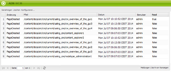 In der Veröffentlichungs- und Autorenumgebung werden Informationen zu Folgendem angezeigt: