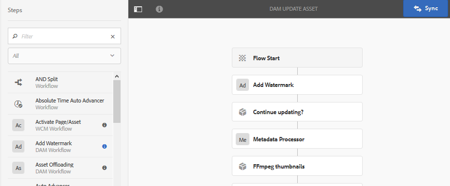 使用水印步骤保存 DAM更新资产 工作流。