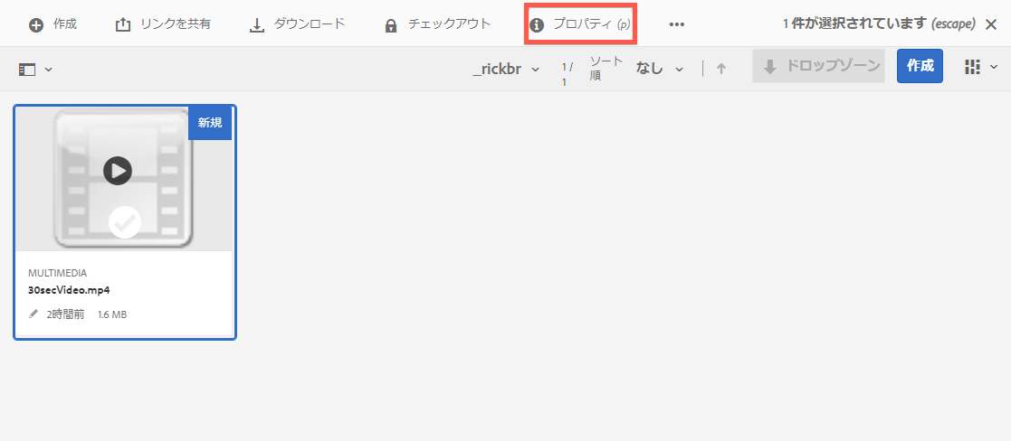 /content/dam/video-exampleには、ビデオエンコーディングプロファイルが適用されています。 - ビデオ