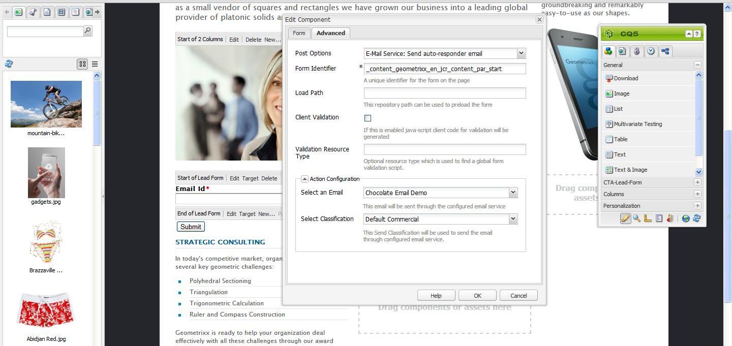 가입 양식이 있는 AEM 페이지의 페이지 속성을 열어 리드에 대한 자동 응답기를 구성합니다.