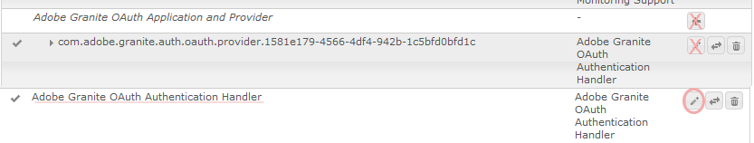 Adobe Granite OAuth Authentication Handler. - Seleccione para abrir la configuración y editarla.