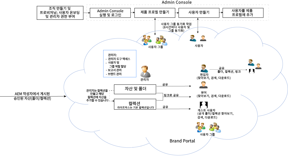 Brand Portal 솔루션 워크플로는 다음 이미지에 표시되어 있습니다.