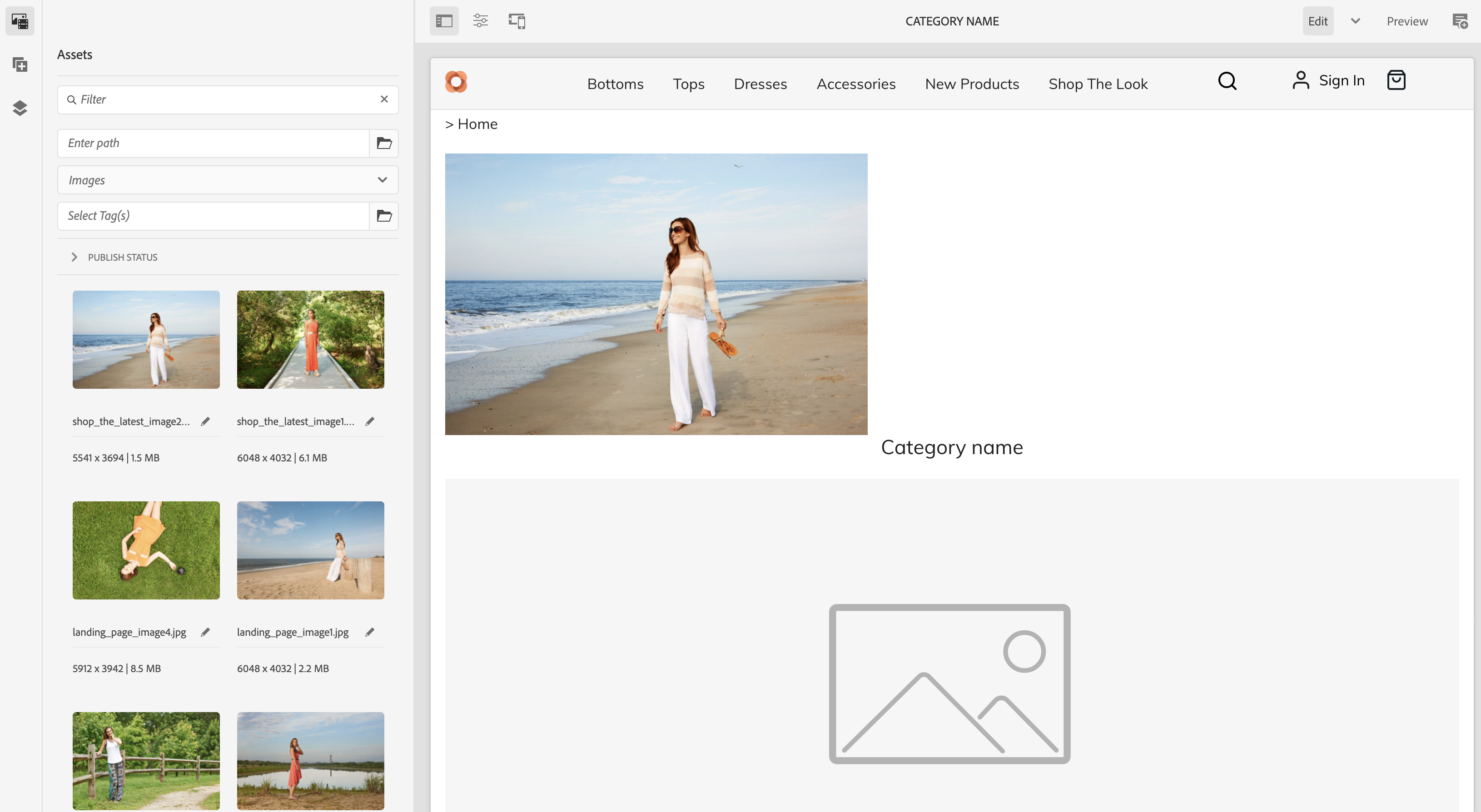 Revenez à la page d’accueil principale et cliquez sur la catégorie Shop The Look pour afficher le modèle spécifique. Toutes les autres catégories utilisent toujours le modèle générique.